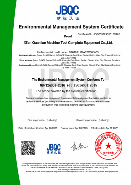 全聯成套全(quán)面通過環境管(guǎn)理體系認證證(zhèng)書